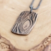 This men's special edition Earth Day necklace is being sent to select earth conscious celebrities. A hand made, solid and pure golden bronze tree bark dog tag hangs on a sterling silver black oxidized chain. This makes for a rich and earthy contrast. Personalize this piece with up to 3 initials on the front in the eye of the tree knot or a date, name or very short message on the back. This piece is custom made to order.