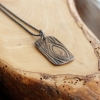 The finished pendant is approx 22mm wide x 40mm tall. The standard length chain in a 2mm solid sterling silver oxidized or bright silver 20" with lobster clasp.