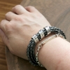 This time, we've chuncked up the design with a double wrap of our braided leather. This gives it a feel of a bangle bracelet that holds it's solid shape. I suggest ordering a little large, 1/2" larger than normal. Ex, my wrist measures almost 6.5", I always wear a 7" bracelet but prefer a 7.5" in this style due to the volume.