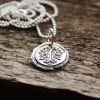 Pure precious silver is 99% pure, making it more desireable and more expensive that sterling silver. It will also be much thicker than sterling giving it a beautiful wearable weight. Because it's so thick, it's work far more than some of the other pendants you may see. It starts as a clay that can be molded, stamped and textured in any way imagineable. I roll the clay and weigh it for a uniform size. Then I press a vintage inspired wax seal stamped into the clay and let it do what it wants. No 2 pieces will ever be the same. It will be perfectly imperfect with raw edges and a rustic, old world feel with texture lines. I then let it dry, sand it to smoothness, and fire in a kiln for approx 3 hours. Once fired, it is solid 99% pure silver. I then wire brush it, file and sand it some more and when I'm happy with the texture I oxidize the piece to leave dark in the low areas and to highlight the high areas. Finally it goes in a tumbler for a final glimmering polish and to add extra strength. Long process, Yes. But sooooo worth it!!