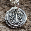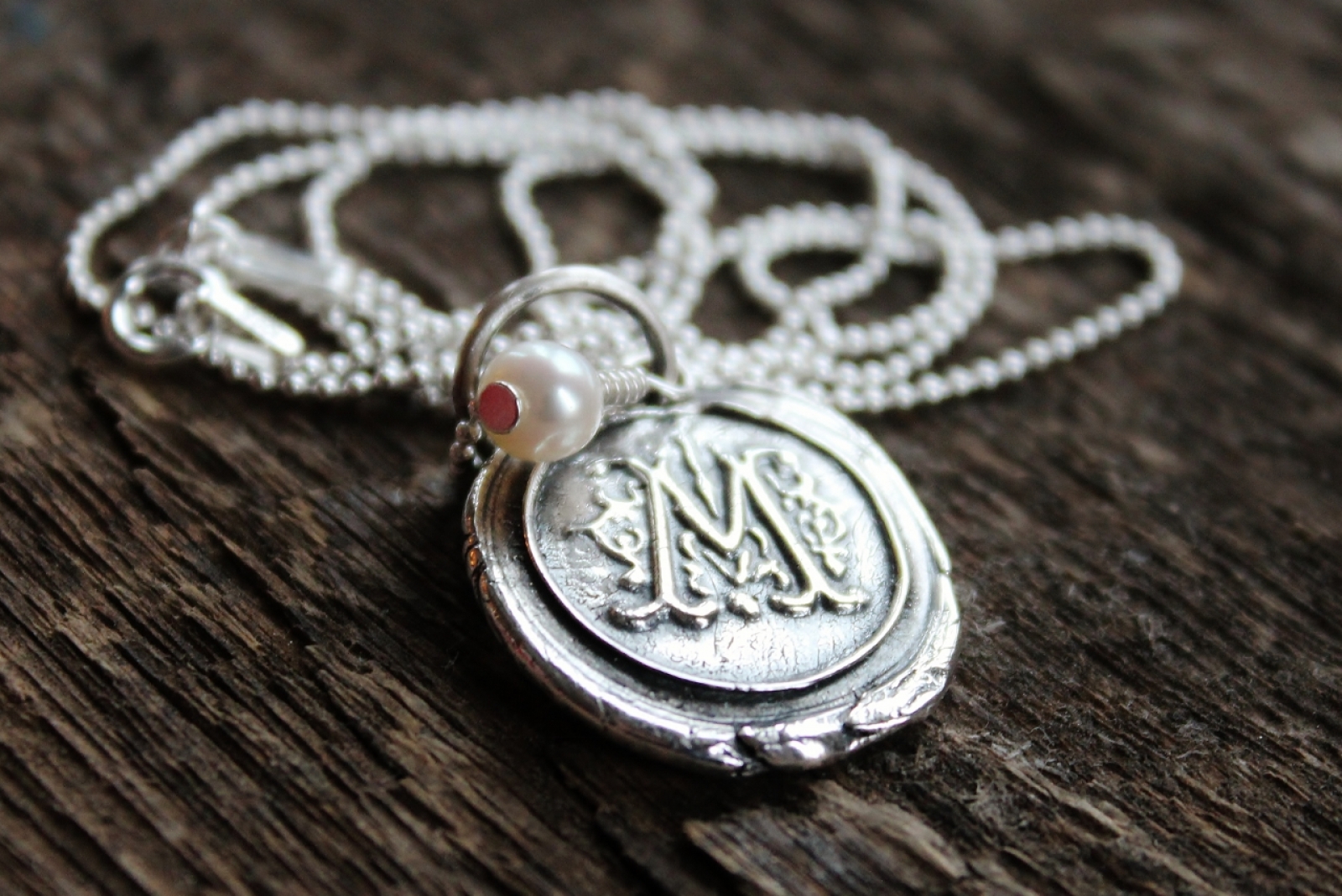 Custom Wax Seal Initial Necklace Personalized in Pure Precious Silver Vintage Inspired