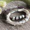 This statement bracelet will be included in the 2012 GBK Emmy Awards official gift lounge. Handcrafted, hand stamped, personalized silver secret message spinner charms on 8 strands of premium leather with silver squared beads and a large and easy to use snap and locking clasp. Add your own personal message to each bracelet for a beautiful and meaningful couples gift.