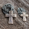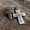 This his and her set began as a gift for a special couple who then had them blessed before wearing them together. The photo I first posted of these pieces have been highly popular with my clients and so now I've made them available to you as well. The men's cross is approx 1 1/4" x 1" and the woman's is approx 1" x 3/4". The size will vary slightly as they are hand made. Her chain is a choice of a 16" or 18" 1mm ball chain and his is a 20" extra large 2mm ball chain.
