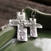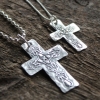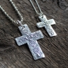 His & Hers Personalized Silver Cross Necklace Set - Rustic Everyday Faith Set