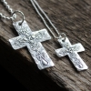 This his and her set began as a gift for a special couple who then had them blessed before wearing them together. The photo I first posted of these pieces have been highly popular with my clients and so now I've made them available to you as well and this time in fine silver! The men's cross is approx 1 1/4" x 1" and the woman's is approx 1" x 3/4". The size will vary slightly as they are hand made. Her chain is a choice of a 16" or 18" 1mm ball chain and his is a 20" extra large 2mm ball chain.