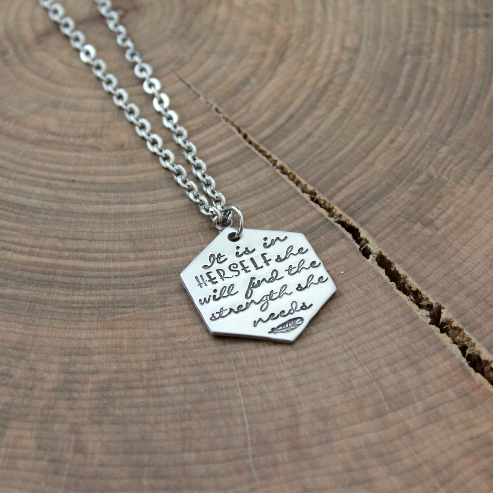 Inspirational It Is Within Herself She Will Find The Strength She Needs Long Necklace, Long Statement Necklace, Strength Quote Necklace, Inspirational Jewelry, Mantra Necklace, Hand Stamped Handmade Quote Necklace