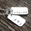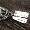 This handcrafted, hand stamped and personalized sterling silver men's dog tag necklace includes 1 or more smaller dog tags customized the way you like. Add initials, names, special dates, the possibilities are endless. Makes a memorable and personal gift.