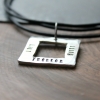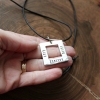 - hand stamped message of choice on up to 3 sides on the square pendant. A maximum of 9 characters per side including spaces and punctuation. Large monogram font will not fit on this piece. Rad font used on the sample.