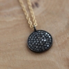 - a 13.5mm perfectly round oxidized/black rhodium, sterling silver solid diamond full moon pendant with genuine pave diamonds, too many diamonds to count.