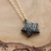 - a thick 14mm oxidized/black rhodium, sterling silver star pendant set with genuine pave diamonds, too many diamonds to count.