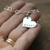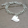 Personalized sterling silver child's bracelet with custom name hand stamped on a pretty heart charm, attached to an adorable sterling silver heart chain. The perfect gift for the little fashionista. See how excited she'll bee when she opens up her gift and sees a personalized piece of jewelry with her name on it!