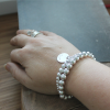 Each bracelet is made of individually strung 3mm- 6mm graduated sterling silver beads on a 7-7.5" bracelet with one 5/8" hand stamped sterling silver name charm. See photo #5 for your font choices. 6mm fonts are only available for initials not full names. lowercase sculptor font is used in the sample. You can choose more than one bracelet by adding more than one to your cart.