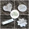 Handcrafted sterling silver medium name charm to add-on to any 2 Sisters Handcrafted necklace or bracelet design. Choose from round, heart, flower, long tag, dog tag, square or oval shapes to personalize with a name, design stamp or initials of choice to complete your custom piece.