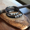 As gifted to Selena Gomez and crew. This his & hers or great mother & daughter set is handcrafted, hand stamped and personalized with your custom messages on a silver spiraling focal piece that has been threaded on 3 luscious strands of premium naturally died braided leather. The newest edition to our best selling & original secret spinning message bracelet in another timeless and unisex design. This listing includes 2 bracelets with 2 same or different personalized messages in any 2 sizes.