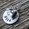 Handcrafted, hand stamped, personalized sterling silver name charm with puffy heart and swarovski crystal birthstone. For the one you love. It could be your children, husband to be, best friend or in memory of someone special. A beautiful quality piece perfect for everyday wear and to be cherished for a long time.