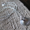 This sterling silver round charm is 5/8" round with a small solid sterling silver puffy heart charm and aswarovski crystal birthstone of choice from photo #5. All components of this necklace are solid 925 sterling silver and comes with your choice of a 16" or 18" ball chain with spring clasp.