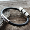 Personalized Secret Message Spinner Bracelet, Leather and Silver Unisex Cuff Bracelet