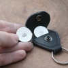 - a thick and sturdy genuine black leather snap front golf ball marker case with attached stainless steel key ring.
