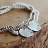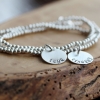 Stack this set of 3, sterling silver stretch beaded bracelets with 2 personalized and hand stamped sterling silver round name charms and a sterling silver puffy heart charm. Perfect for a mom of 2 or as a couples set. This comes as a set of 3 but they can be shared or worn individually.