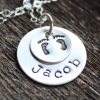 Personalized Silver Necklace, Baby Feet, Name Necklace, Hand stamped, Name Necklace - Lia Necklace