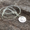 Handcrafted, hand stamped and personalized sterling silver children's name necklace with design stamp of choice. This was a custom order for a new baby gift but is an excellent gift for baby showers, birthdays, grandmas's, baptisms and christenings. This one includes an adorale little pair of solid baby feet but could include any design in photo #5 other than the hand print, large heart or brackets which are too large.