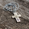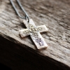Personalized Solid Bronze Rustic Cross Necklace - On Dark Sterling Silver Chain