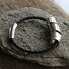 A new addition to our insanely popular spinning message bracelet family, this one has the same hand stamped extra large stamping space you love with a premium round braided leather band and finished with our signature large and easy to use snap closure. Choose a single or double wrap braided band!