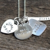 Please let me know your font and personalized message choices for each pendant in the message to seller section at checkout. Please use the sample as guides for maximum amount of characters.