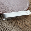 This personalized tie bar is hand stamped both on the front with a monogram and a secret message on the back, for those special moments that will be your little secret. This piece has oxidized letters and a modern brushed finish. Make it a message to Daddy from his little ones, from his new bride to be or to the groomsmen as wedding attendant gifts.