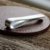 - a thick but light weight aluminum bar, hand forged for a tight clip and smooth bend. Measures 2 3/4" x 3/8"