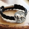 Running Horse Silver & Leather Medallion Bracelet - Strong & Free Spirit Equestrian Bracelet