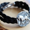 - all natural, premium Italian leather, thick 3/8" braided, double wrap band in a custom size to fit. Please note this bracelet is not adjustable so please measure your wrist and give actual measurement for a perfect fit. I will add a small amount for comfort. Choose natural black leather or natural brown leather.