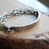 This wonderfully thick and long solid bronze bar bracelet with sterling silver chain includes your custom message hand stamped on the inside and a delicate paisley pattern on the front. Include your secret love message, names, dates or co-ordinates to a special location on the inside of the bar for her to know but no one else.